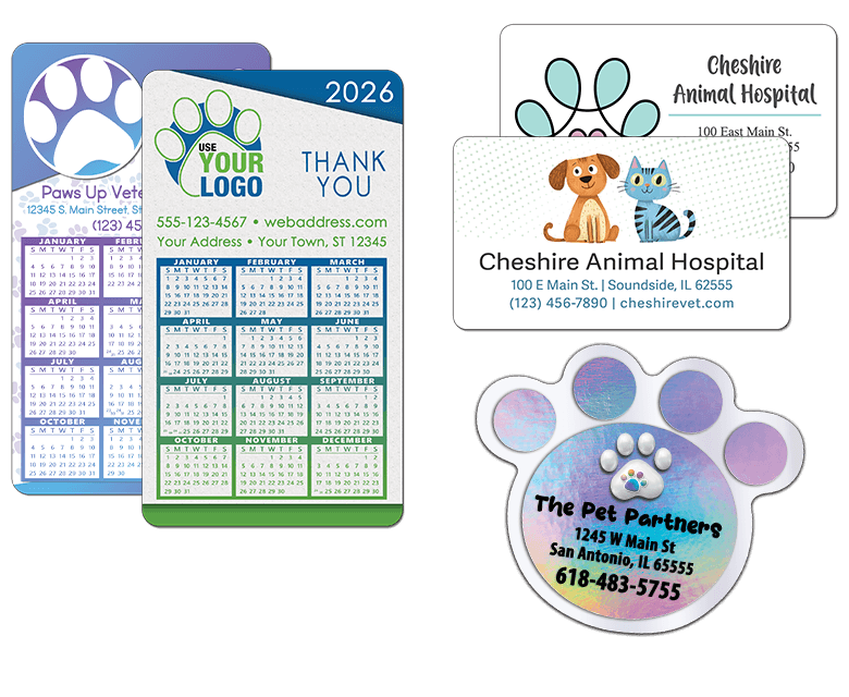 Name tags, business cards, stickers — we have everything you need to create an unforgettable image. Use your practice or business logo or our stock designs to develop a cohesive look and feel for your marketing. Pet-Themed marketing and advertising have never been easier than with MBSvet.com.