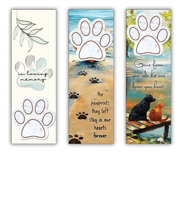 Die-cut Sympathy CardsEngraved Memorial SlatesMemorial Card InsertsPlantable PawprintsPlantable Pawprint Sympathy CardsScatter TubesSeed PacketsSheer Organza BagsStamp CardsSympathy BookletsSympathy BoxesSympathy CardsOther Product
