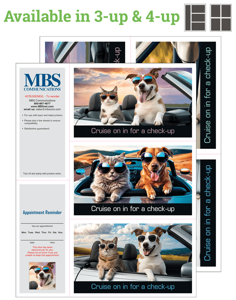 | Postcard Format | 3 Up Laser Postcard, 4 Up Laser Postcard, 4" x 6" Standard Postcard, 5 ½" x 8 ½" Jumbo Postcard |